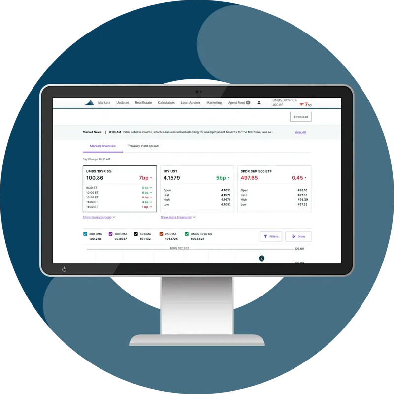 Unlock the key to closing more loans and becoming trusted advisors with MBS Highway. Harness the power of market insights and tools to effectively communicate market trends and rate changes to your clients, establishing your expertise and building trust. With access to valuable resources like loan comparisons, real estate guides, and financial calculators, you can confidently showcase market conditions, highlight the value of homeownership, and seize revenue opportunities. Don’t miss out on the chance to be a top-performing loan officer.